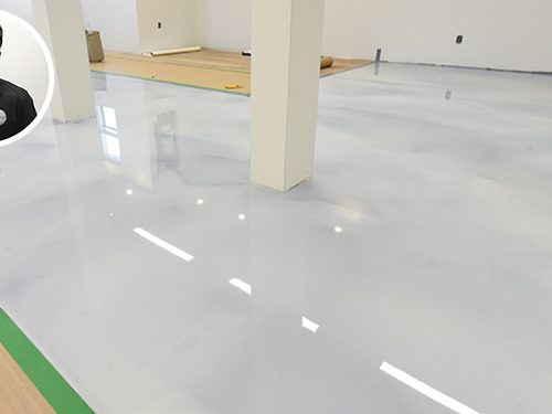 Encore une fois, il est bien important de s’assurer de l’absence de contaminants et d’efflorescences. Il faut utiliser un nettoyant pour béton. Pour assurer une bonne adhérence et un fini uniforme, il faut sabler la surface à l’aide d’un papier 120. Avant de procéder à l’application, il faut dépoussiérer minutieusement la surface, sans quoi la poussière pourrait compromettre votre finition. On recommande 2 séquences consécutives d’aspiration à l’aide d’un aspirateur d’atelier pour éviter toutes mauvaises surprises.