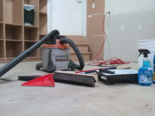 Encore une fois, il est bien important de s’assurer de l’absence de contaminants et d’efflorescences. Il faut utiliser un nettoyant pour béton. Pour assurer une bonne adhérence et un fini uniforme, il faut sabler la surface à l’aide d’un papier 120. Avant de procéder à l’application, il faut dépoussiérer minutieusement la surface, sans quoi la poussière pourrait compromettre votre finition. On recommande 2 séquences consécutives d’aspiration à l’aide d’un aspirateur d’atelier pour éviter toutes mauvaises surprises.