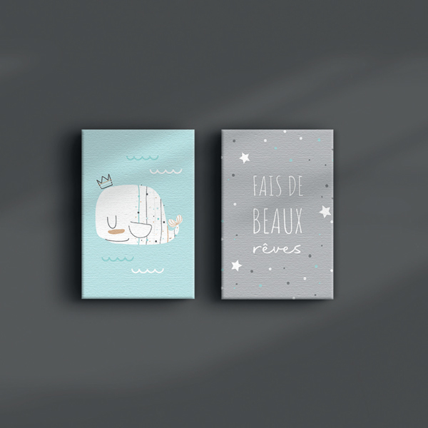 Cadre/toile décoratif collection nautica. Cadre en français ou en anglais (Sleep well, sweet dreams). Imprimé et agrafées sur des cadres de bois.
