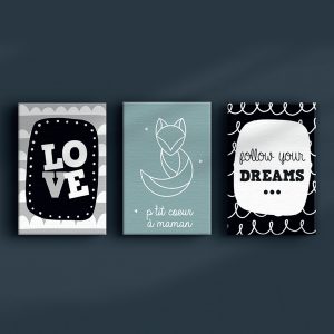 Cadre/toile décoratif collection picotine. Cadre en français ou en anglais. Imprimé et agrafées sur des cadres de bois.