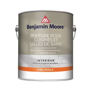 La peinture Cuisines/Salles de Bains de Benjamin Moore est une peinture 100% acrylique de qualité supérieure. Elle est conçue pour être appliquée dans les cuisines et les salles de bains, comme l’indique son nom. Cuisines/Salles de bains de Benjamin Moore comporte des agents anti-moisissures qui préviens la prolifération des moisissures sur les surface sur lesquelles la peinture est appliquée. Cuisines/Salles de bains viens dans un fini perle qui se lave facilement tout en offrant un lustre décoratif.