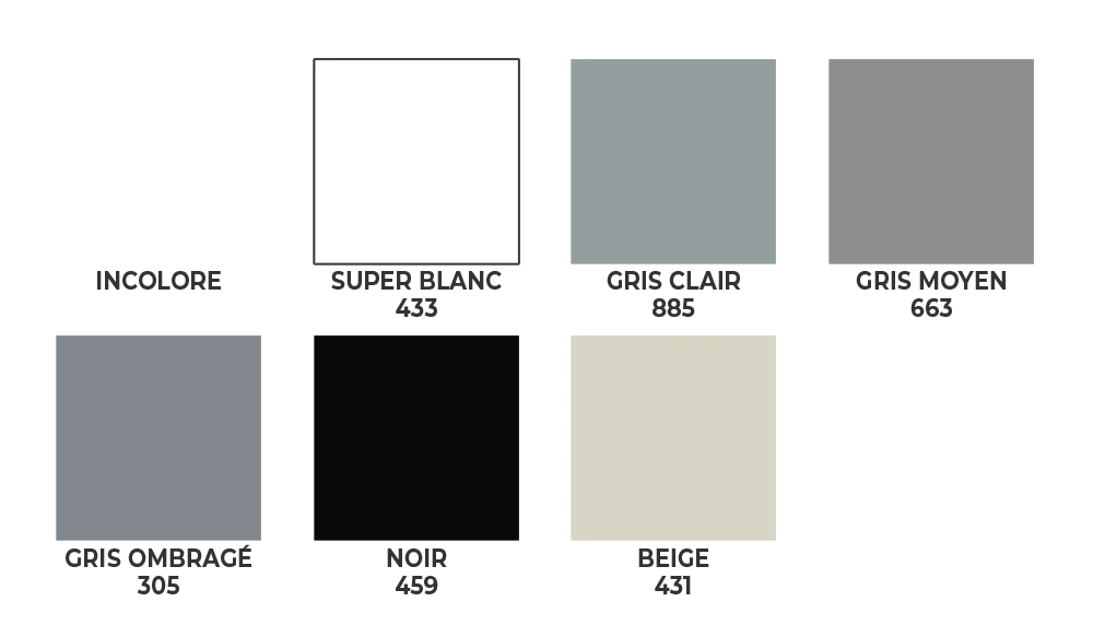 * Les couleurs affichées peuvent varier en fonction de l'écran.