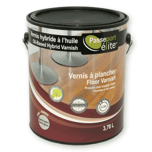 Le vernis à plancher hybride (huile à base d’eau) Passeport Élite est faible en COV, il sèche rapidement et offre une résistance supérieure à l’abrasion grâce à l’oxyde d’aluminium. Pour procurer une couleur riche à votre plancher, le vernis hybride est tout indiqué.