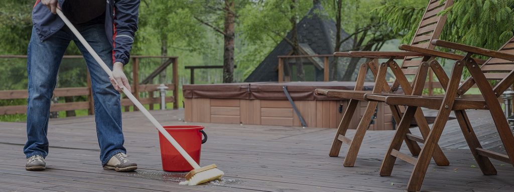 Il est important que le bois soit bien propre. Pour ce faire, on veut éliminer de la surface toutes traces de contaminants, de saletés et de corps gras. Le meilleur produit à utiliser à cette fin est un nettoyant multiusage ou encore un nettoyant pour terrasse en bois.